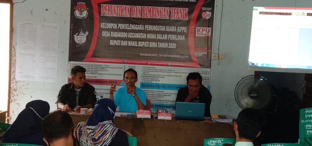 Pelantikan dan bimbingan teknik KPPS desa Rabakodo diselenggarakan di Kantor desa Rabakodo Minggu 29 November 2020. Bimbingan Teknik ini diharapkan bisa menjadi pembekalan untuk para anggota KPPS supaya lebih siap pada waktu pelaksanaan pemungutan suara serentak yang akan diselenggarakan pada hari Rabu 09 Desember 2020 mendatang. pelatihan diselenggarakan agar petugas memahami tugas pokok dan fungsi selama pemungutan suara.
